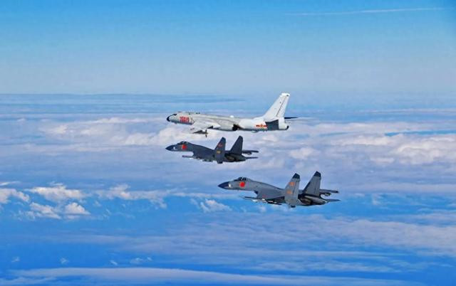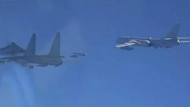 我军轰-6J与歼-16在黄岩岛空域战备警巡